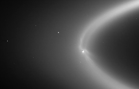 Μια από τις σημαντικότερες ανακαλύψεις του Cassini ήρθαν το 2005, όταν το σκάφος κατέγραψε γιγάντιους πίδακες παγοκρυστάλλων και αερίων που πηγάζουν από ρωγμές στην λευκή επιφάνεια του Εγκέλαδου, ενός σχετικά μικρού φεγγαριού του Κρόνου με διάμετρο 500 μέτρα.