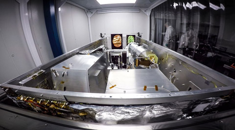 Το πρόγραμμα Habitable Zone Planet Finder (HPF) υπό την ηγεσία του Penn State παρέχει τις πιο ακριβείς μετρήσεις μέχρι σήμερα των υπέρυθρων σημάτων από κοντινά άστρα. Φωτογραφία: Το όργανο HPF κατά την εγκατάστασή του στο καθαρό δωμάτιο του τηλεσκοπίου Hobby Eberly στο McDonald Observatory. Πηγή: Guðmundur Stefánssonn / Penn State. Creative Commons
