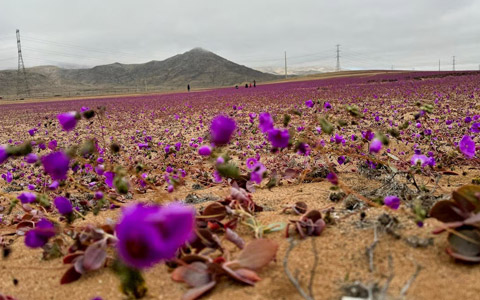 Υπό κανονικές συνθήκες, η πιο άνυδρη έρημος του πλανήτη είναι ένα γυμνό, μονόχρωμο και στατικό τοπίο, ένα μέρος που συχνά επιλέγει η NASA για προσομοιώσεις του εχθρικού περιβάλλοντος του Άρη. Αυτές τις μέρες όμως η έρημος Ατακάμα καλύφθηκε από ένα σπάνιο βιολετί χαλί, καθώς η ζωή βρήκε ευκαιρία να ανθίσει.
