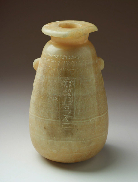 Μια δεύτερη επιγραφή στο βάζο, γραμμένο στην απλοποιημένη δημώδη αιγυπτιακή γραφή, αναφέρει ότι το αγγείο των 22 εκατοστών είχε χωρητικότητα 1,2 λίτρων.