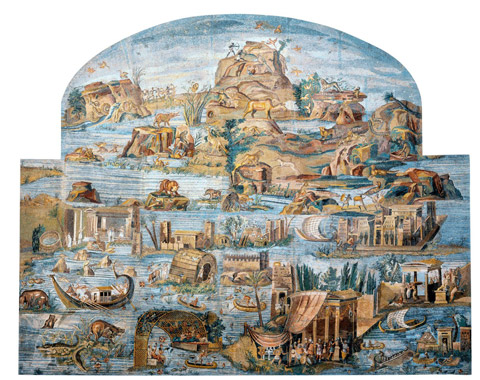 Το μωσαϊκό της Παλεστρίνας, ζωγραφισμένο τον 1ο αιώνα μ.Χ, απεικονίζει σκάφη αναψυχής στο δέλτα του Νείλου