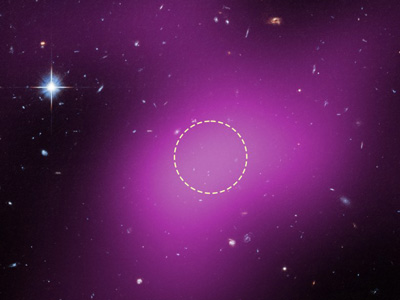 Το Νέφος-9 είναι αόρατο στο οπτικό φάσμα, έγινε όμως αντιληπτό από τις ραδιοεκπομπές του (μοβ) όπως καταγράφηκαν με το επίγειο τηλεσκόπιο VLA [Science: NASA, ESA, VLA, Gagandeep Anand (STScI), Alejandro Benitez-Llambay (University of Milano-Bicocca); Joseph DePasquale (STScI)]