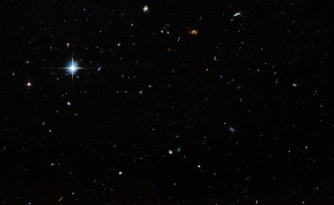 Αυτό είδε το Hubble όταν στράφηκε στην κατεύθυνση του Νέφους-9: απολύτως κανένα άστρο. Οι φωτεινές κουκκίδες είναι άσχετοι γαλαξίες στο φόντο (NASA, ESA)