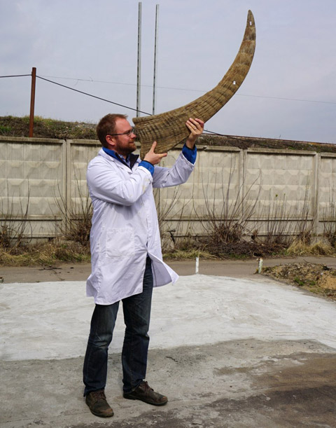 O Λόβε Νταλέν του Πανεπιστημίου της Στοχόλμης επιδεικνύει ένα κέρατο τριχωτού ρινόκερου (Irina Kirilova via Reuters)