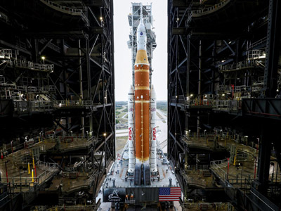 Ο μεγαλύτερος πύραυλος που κατασκευάστηκε ποτέ για λογαριασμό της NASA ολοκλήρωσε το Σαββατοκύριακο την αργόσυρτη διαδρομή μέχρι την εξέδρα εκτόξευσης, καθώς η αμερικανική διαστημική υπηρεσία ετοιμάζεται να επιστρέψει στη Σελήνη έπειτα από μισό αιώνα απουσίας.