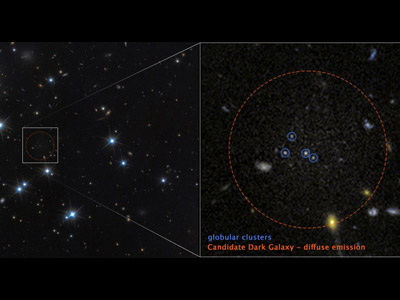 Εξετάζοντας παρατηρήσεις του διαστημικού τηλεσκοπίου Hubble, οι ερευνητές εντόπισαν τέσσερα σφαιρωτά σμήνη –ομάδες χιλιάδων ή εκατομμυρίων άστρων- στο γαλαξιακό σμήνος του Περσέα, περίπου 300 εκατομμύρια έτη φωτός από τη Γη. Δεδομένου ότι τα σφαιρωτά σμήνη απαντούν συνήθως στην περιφέρεια γαλαξιών, η παρουσία τους υπεδείκνυε ότι κάποιος σκοτεινός γαλαξίας βρισκόταν ανάμεσά τους.
