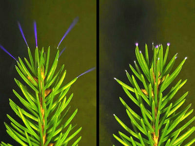 Το φαινόμενο είχε προβλεφθεί πριν από τουλάχιστον μισό αιώνα, μέχρι σήμερα όμως είχε καταγραφεί μόνο στο εργαστήριο: στη διάρκεια καταιγίδων, οι κορυφές των δέντρων εκπέμπουν αμυδρές λάμψεις λόγω της συσσώρευσης ηλεκτρικών φορτίων.