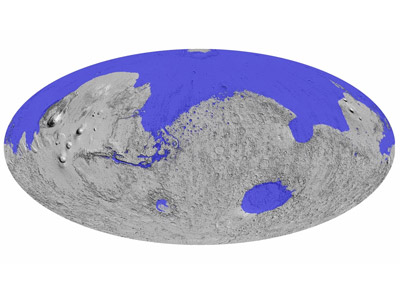 H γαλάζια ζώνη της εικόνας αντιστοιχεί στην πιθανή υφαλοκρηπίδα του βορείου ημισφαιρίου του Άρη ( A. Zaki)